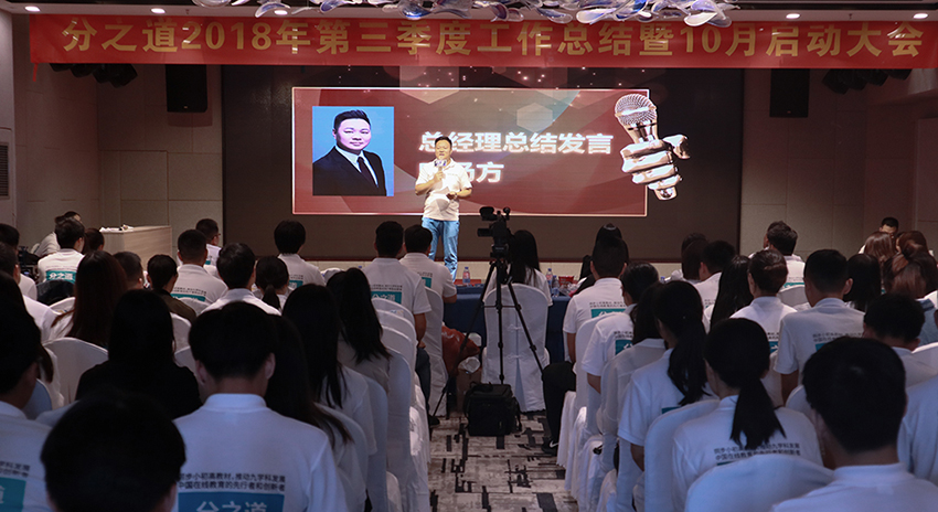 9月的热情犹在,10月的热浪又起。2018年10月13日,分之道总经理叶乃方先生带领一群激情豪迈的年轻人,一个奔跑在梦想之路的分之道团队在广州涵天戴斯酒店召开了第三季度总结暨10月启动大会。