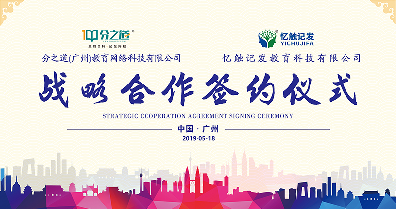 2019年5月18日上午,分之道 教育网络科技有限公司(简称“分之道”)与忆触记发教育科技有限公司(简称“忆触记发”)在分之道广州总部隆重举行了战略合作签约仪式。