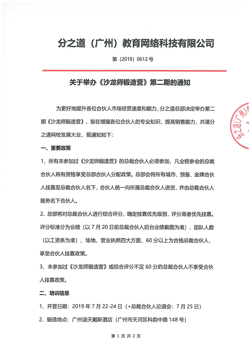 关于举办分之道《沙龙师锻造营》第二期的通知。