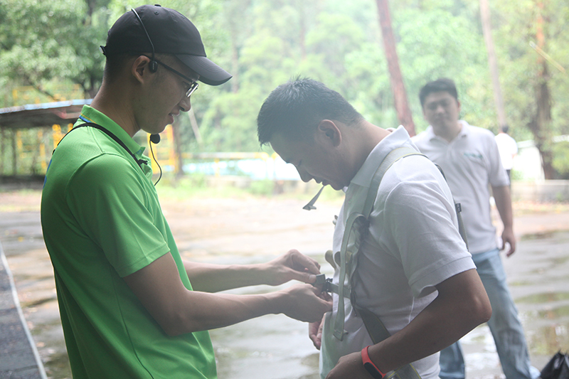 由于公司的人数有120来人,所以拓展活动便分A、B两组错开进行。早上9:00,我们A组的人员便到达了番禺的历奇山庄,开始进行了以小组为单位的——贴鼻子和团队协作比赛。外边虽然下着大雨,不过大家的热情丝毫没有受到影响,尖叫声、欢呼声此起彼伏,每位小伙伴玩得可开心了!